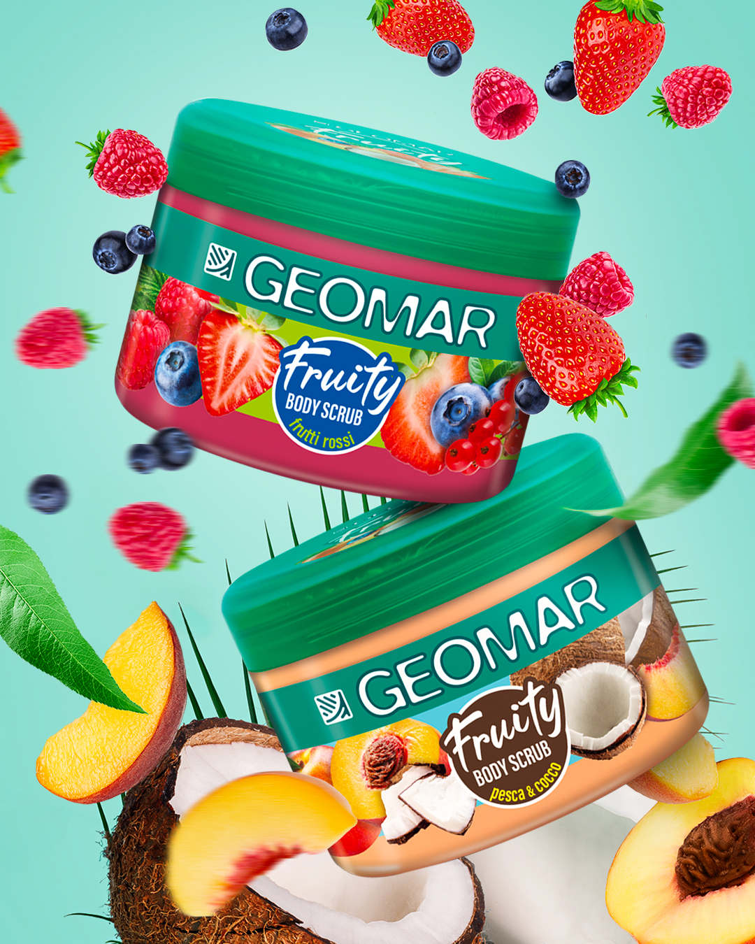 I Fruity body scrub di Geomar sono vegan, dermatologicamente testati su pelli sensibili, golosi e irresistibili. Golosi perché sono un’esplosione di freschezza e dolcezza fruttata, pensati per trasformare la doccia in un vero rituale di benessere. Qual è il “gusto” che fa per te? Sei del Team Pesca&Cocco o del Team Frutti Rossi?